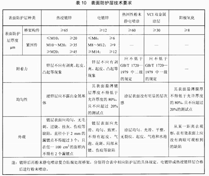 4.3.11.2 附件的防腐处理应与桥架的主体结构相一致,紧因件的防腐处理见表10。