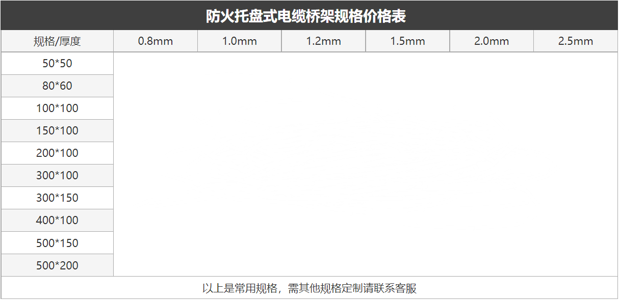 以防火桥架为例各个桥架的型式有梯式、(无孔)槽式、(有孔)托盘式