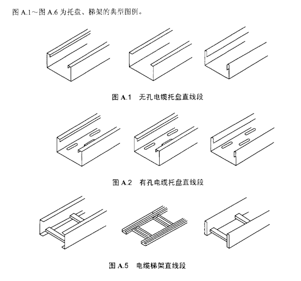 常规的电缆桥架的类型分为三种:槽式桥架(无孔托盘)、梯式桥架(梯架)、托盘式桥架(有孔托盘)